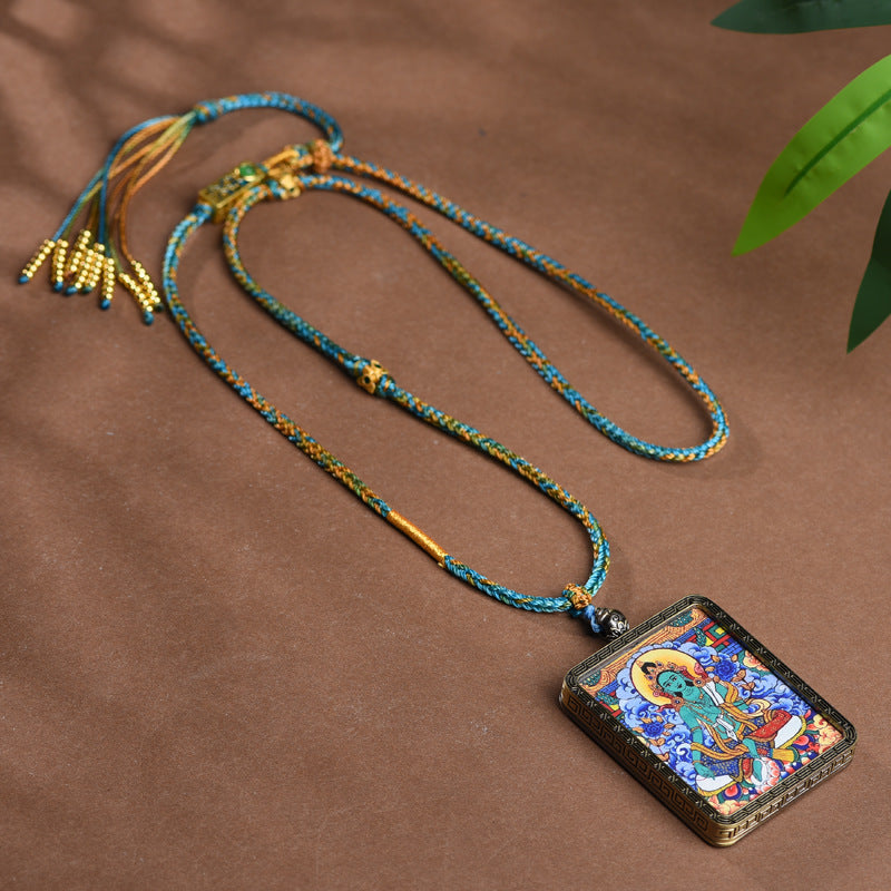 Tibetan woven rope rectangular hand-painted Thangka Buddha brand necklace