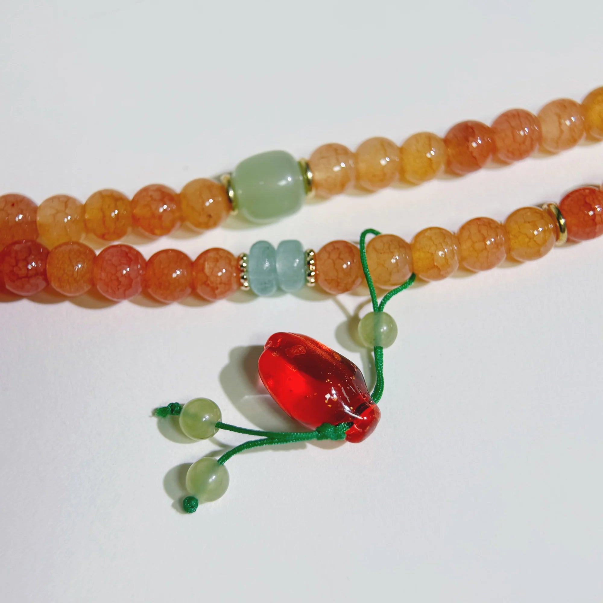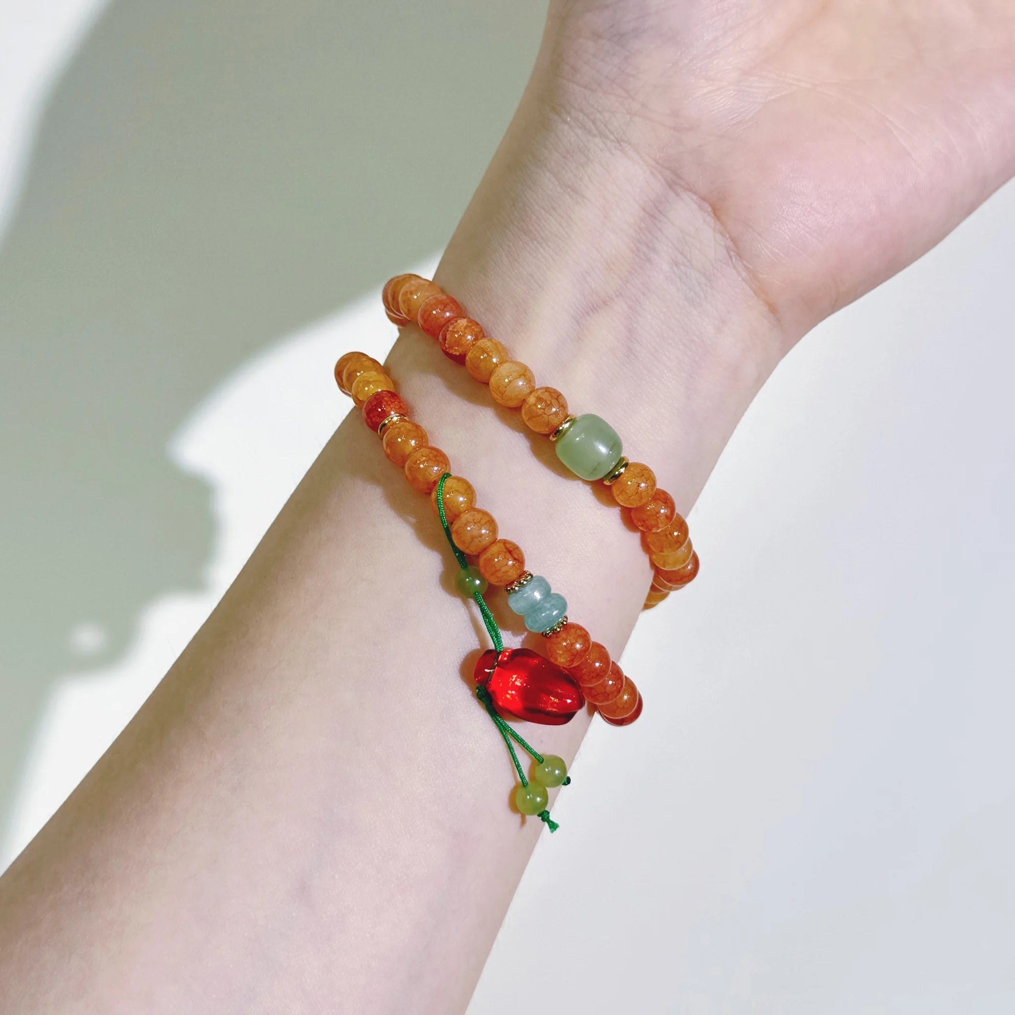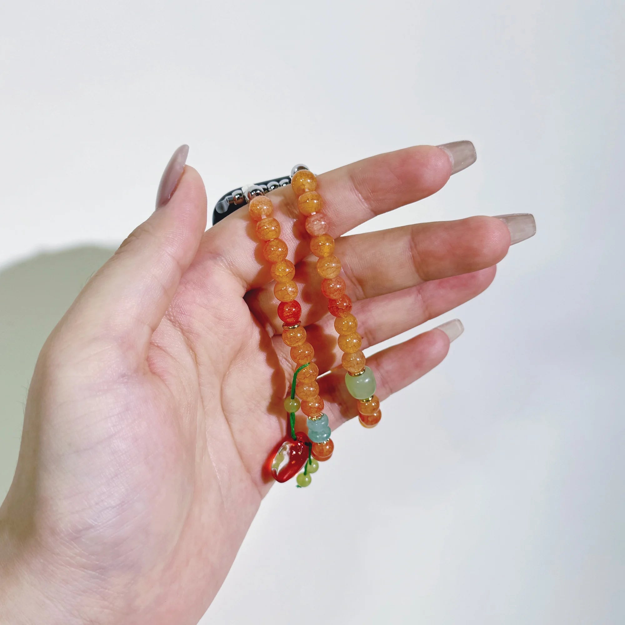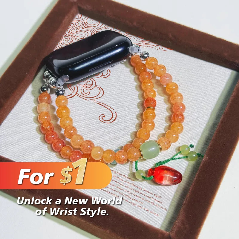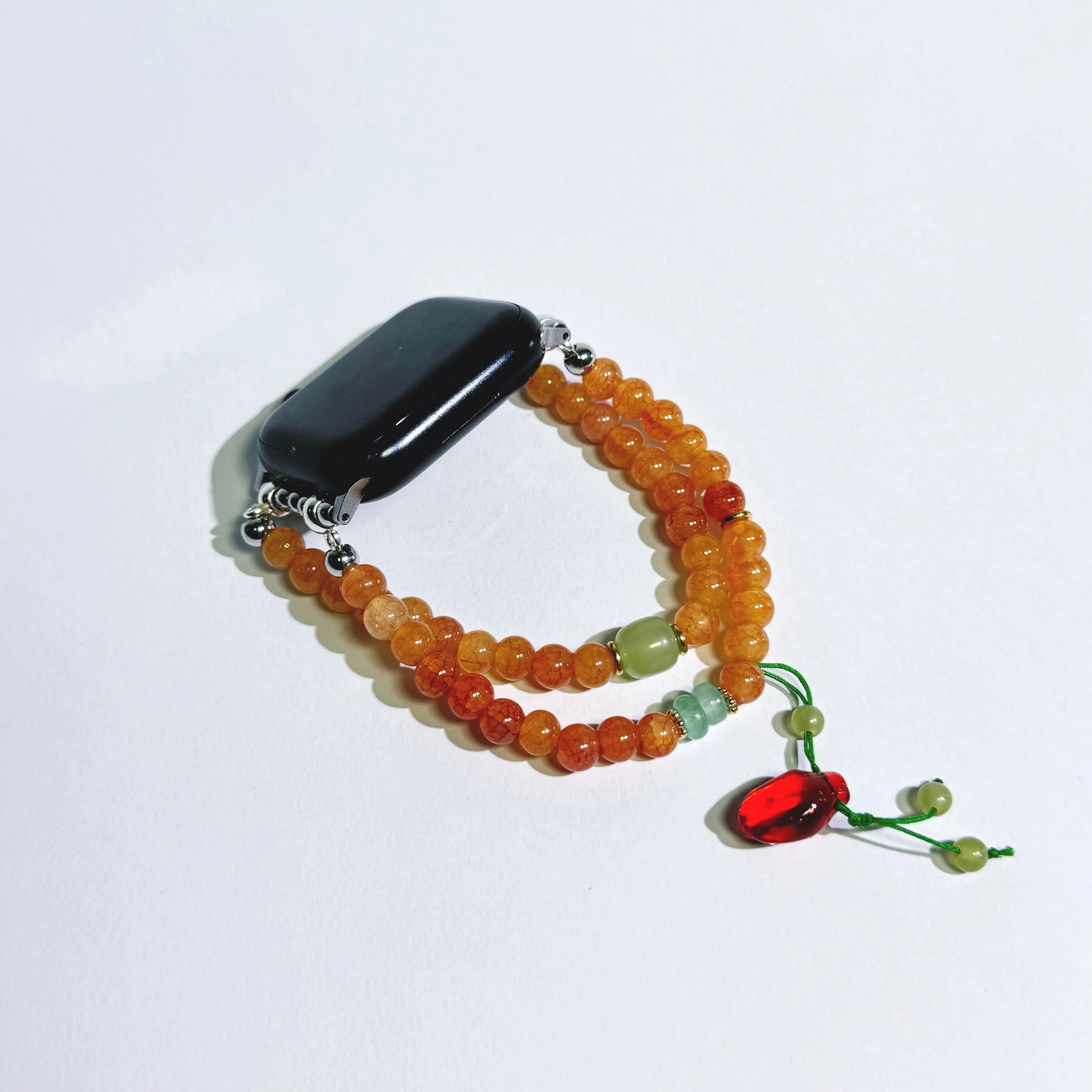 This Persimmon Orange Agate Beaded Chinese-Style Apple Watch Band beautifully combines natural crystal energy with modern smart technology. Each persimmon orange agate bead is carefully selected, radiating a warm and vibrant luster that adds a unique Chinese aesthetic to your Apple Watch.