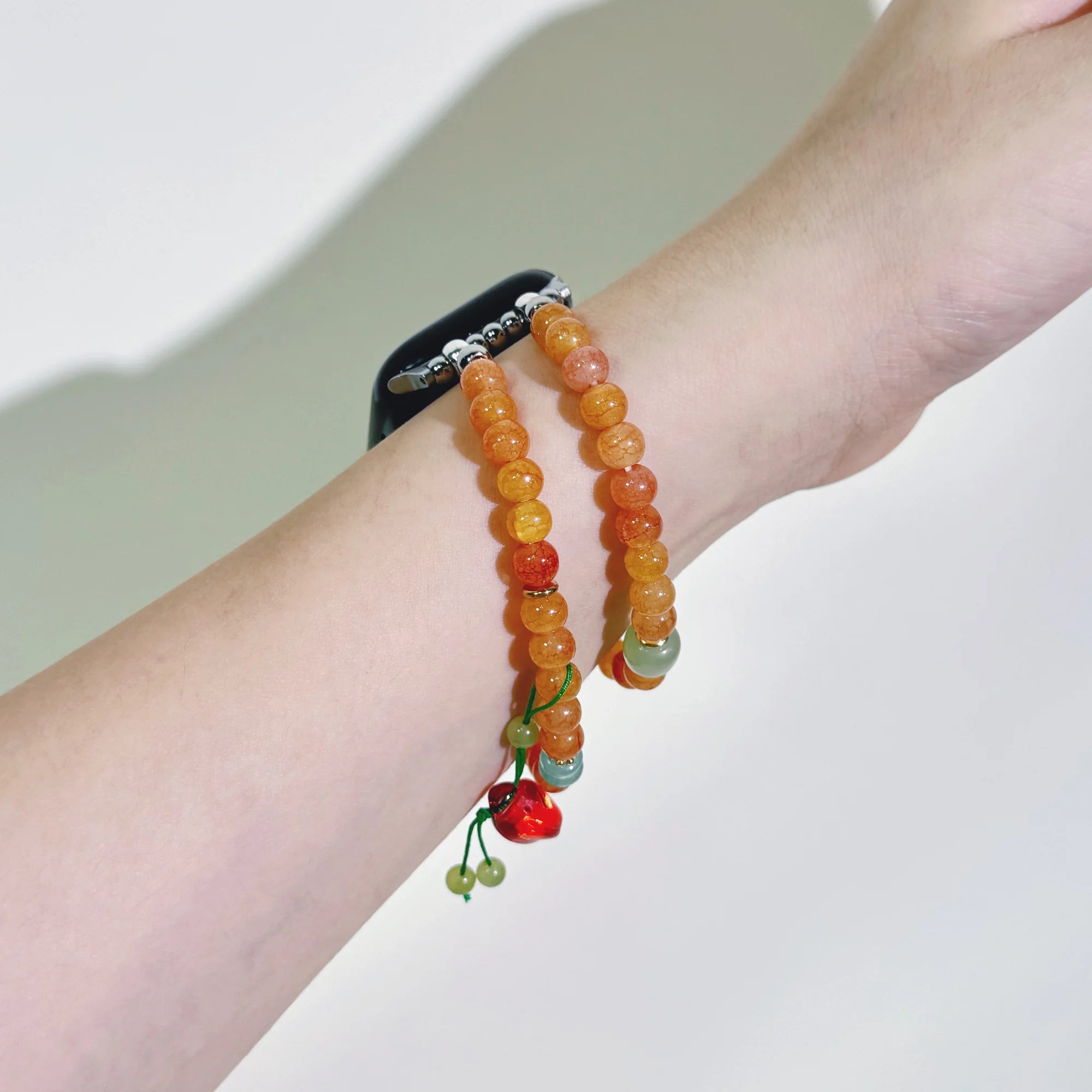 Persimmon Orange Agate Beaded Chinese-Style Apple Watch Bracelet Band