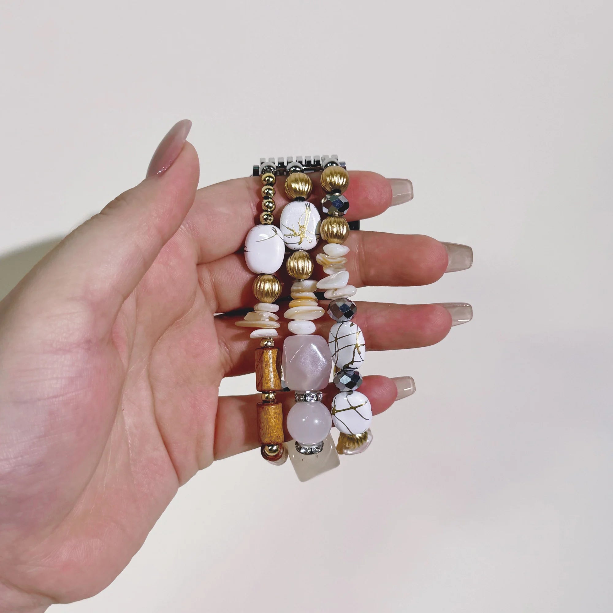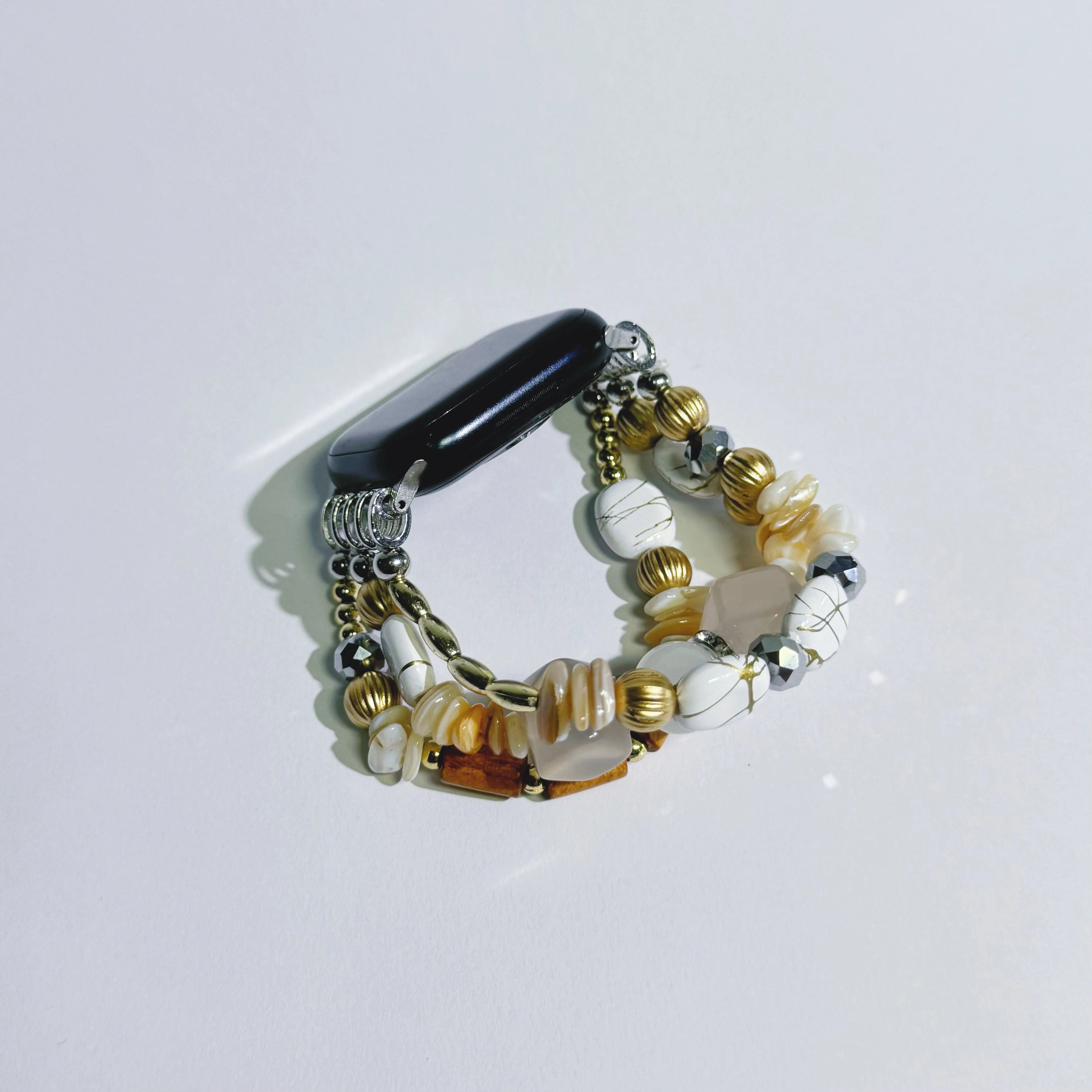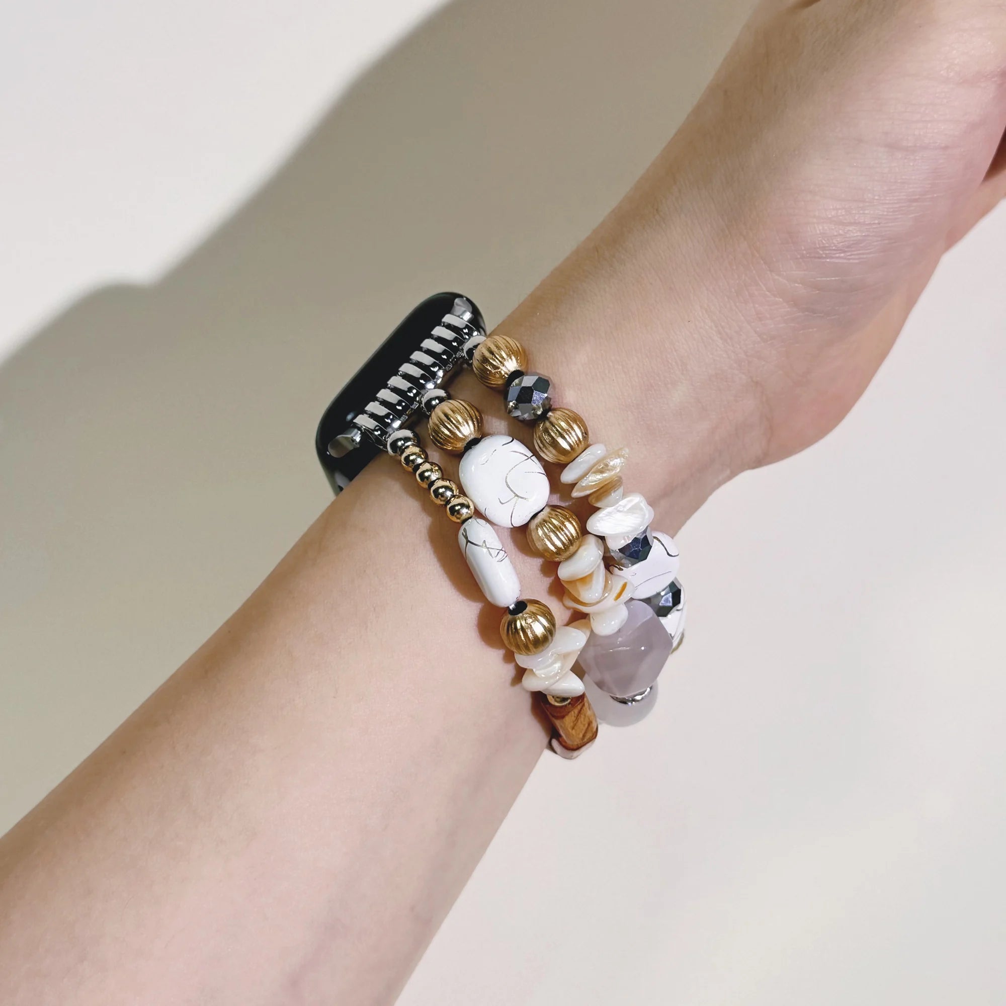 Colorful Queen Agate Beaded Ethnic-Style Apple Watch Bracelet Band - White