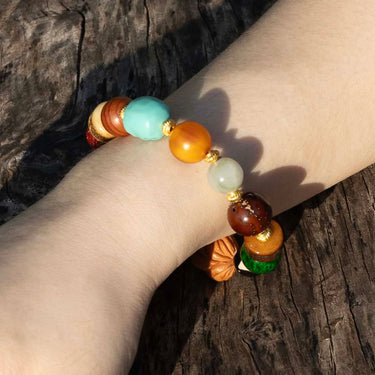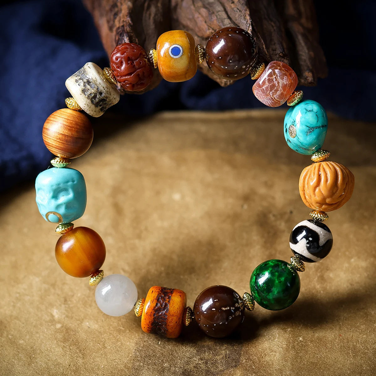 Tibetan style multi treasure bracelet, a mix of various stones, celestial beads, and Buddhist beads, with ethnic style bracelets