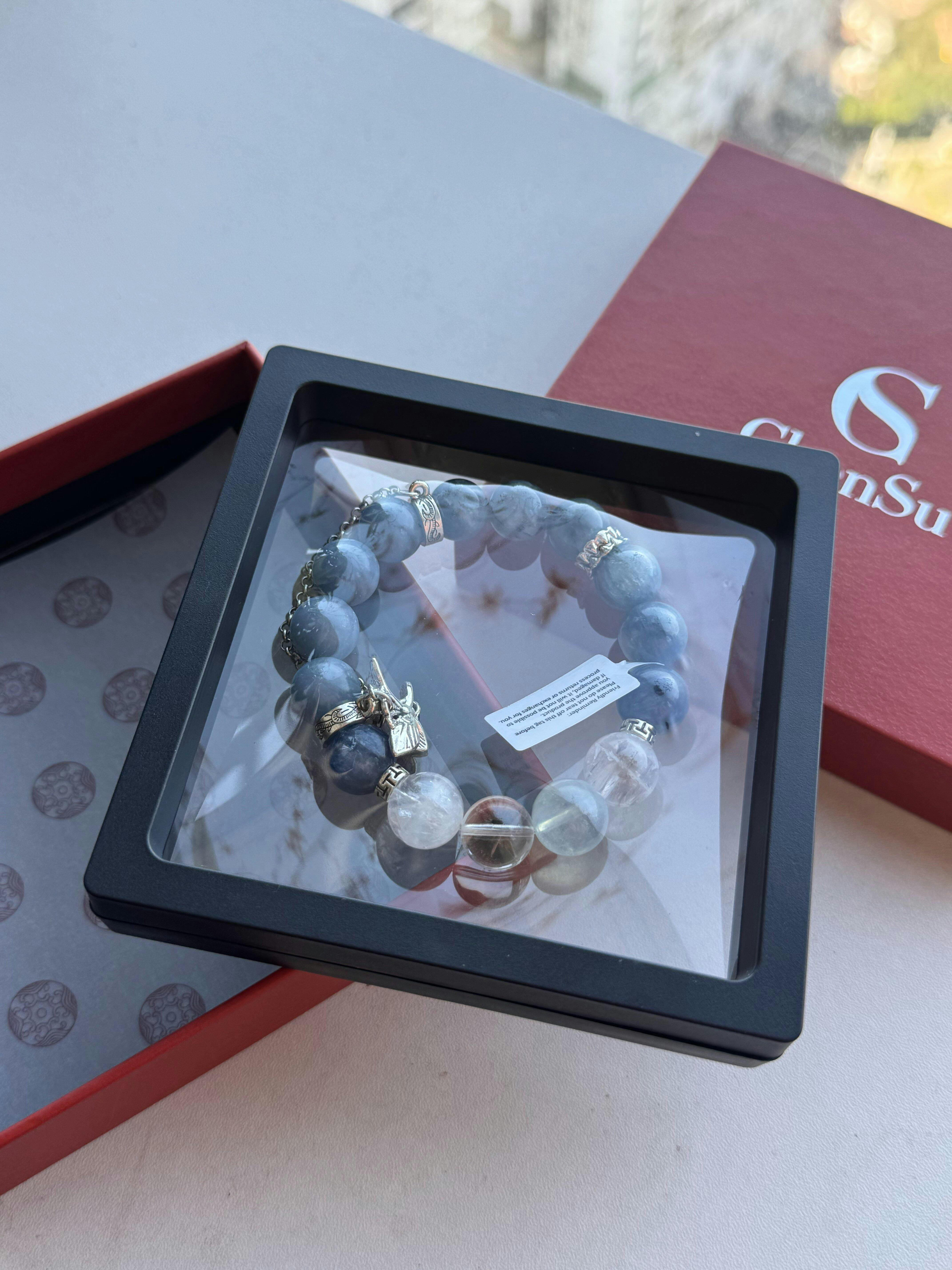 This Aquamarine × Kyanite × Angelite × Clear Quartz Calm & Spiritual Clarity Crystal Bracelet combines four high-frequency blue-toned energy gemstones, bringing you angelic protection, inner peace, and spiritual clarity. Like the embrace of sky and ocean, bringing the power of serenity and healing.