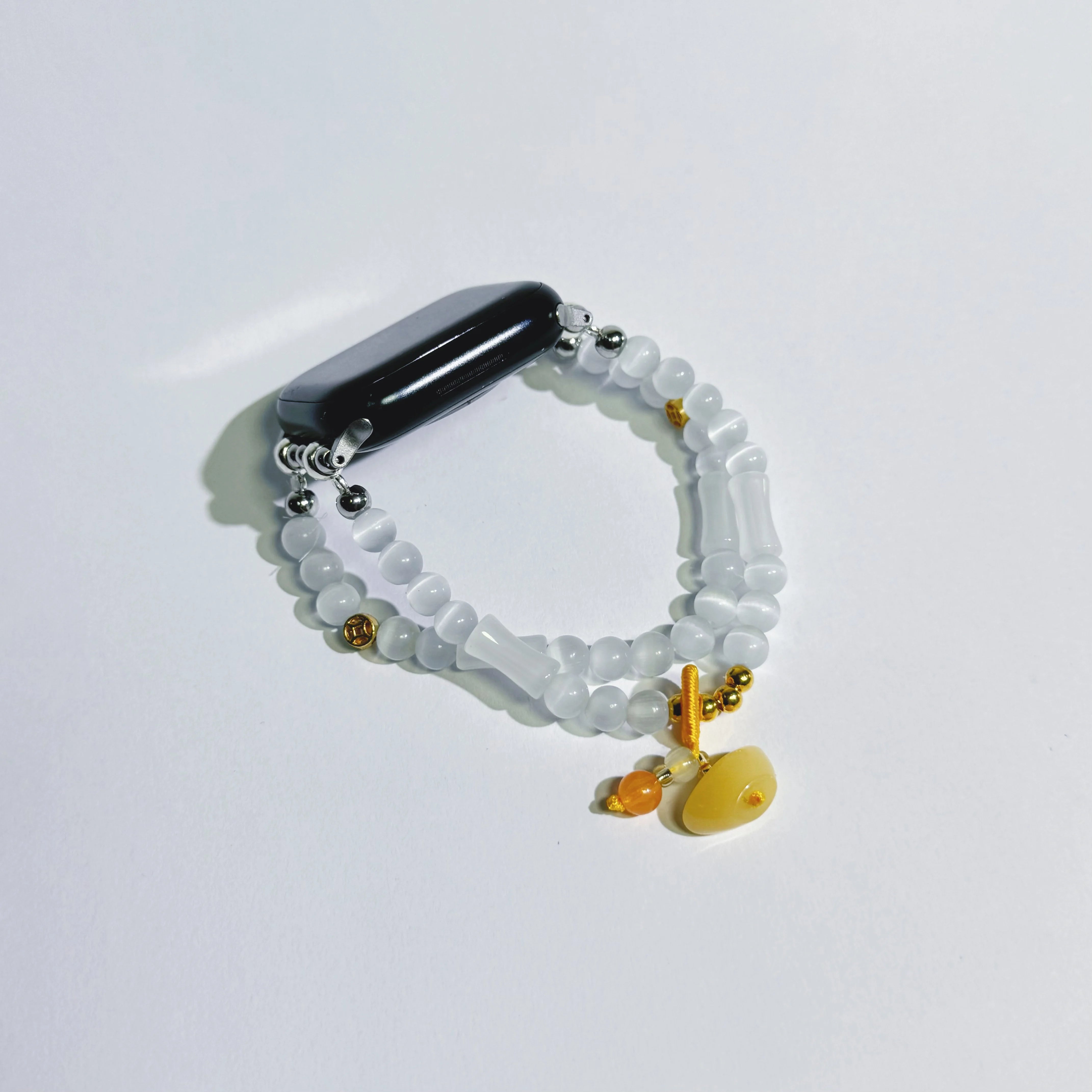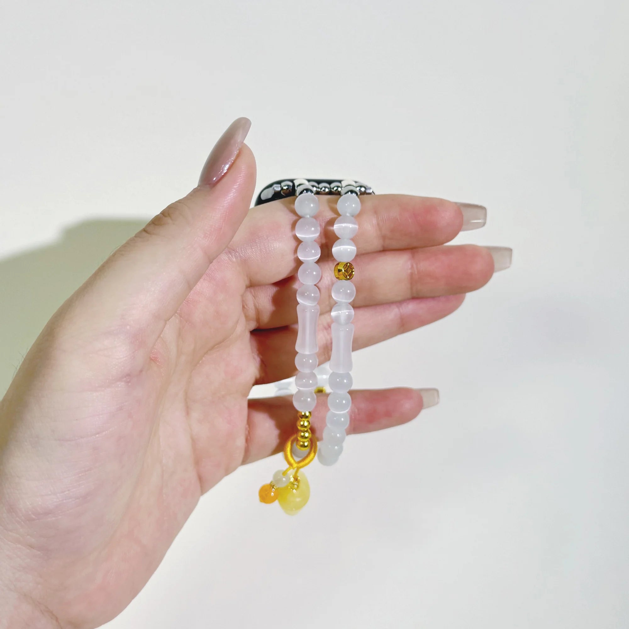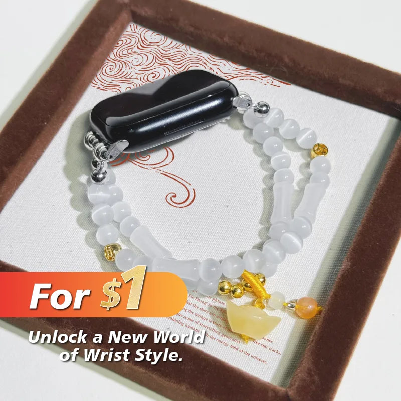 This White Bamboo Agate Beaded Chinese-Style Apple Watch Band beautifully combines natural crystal energy with modern smart technology. Each white bamboo agate bead is carefully selected, radiating a pure and elegant luster that adds a unique Chinese aesthetic to your Apple Watch.
