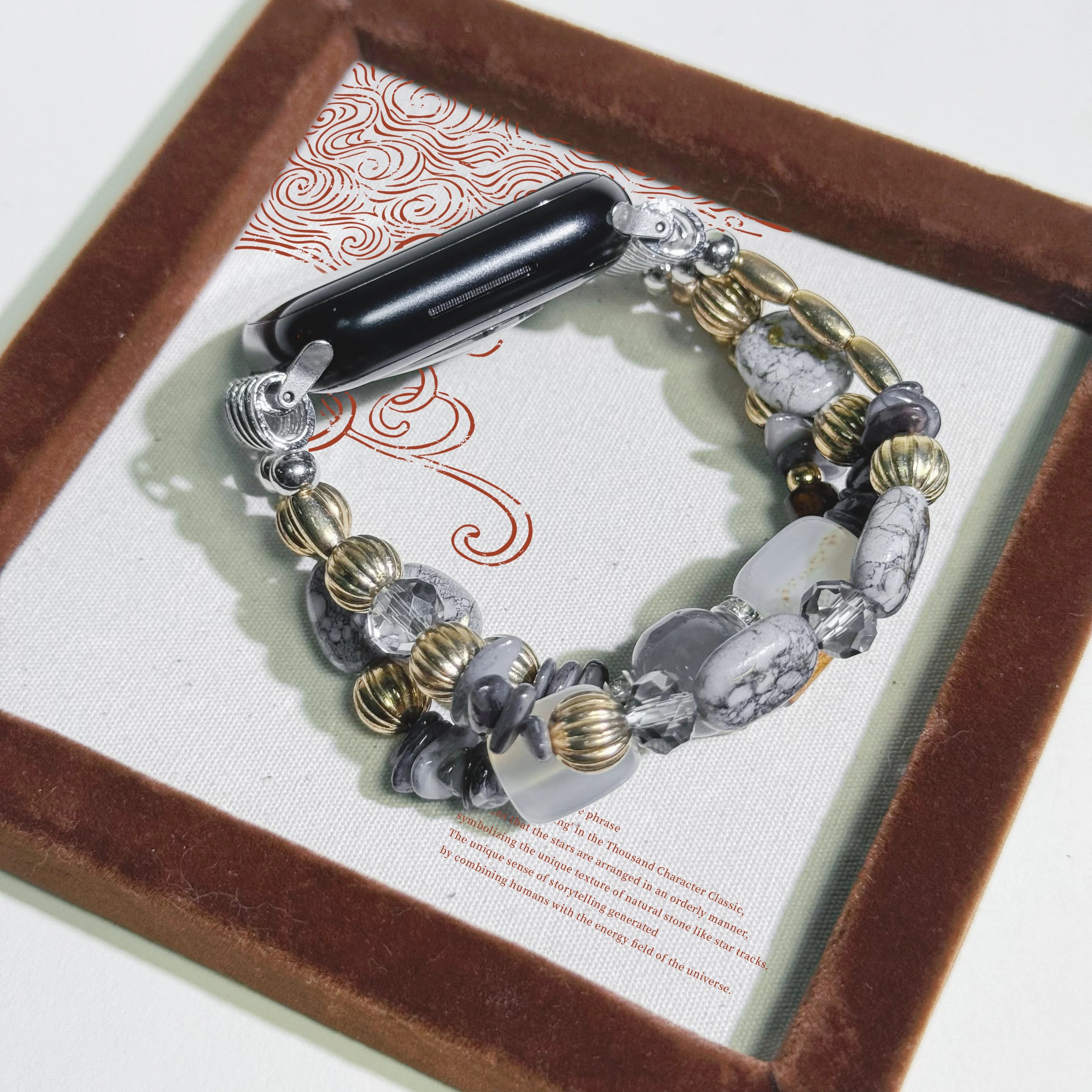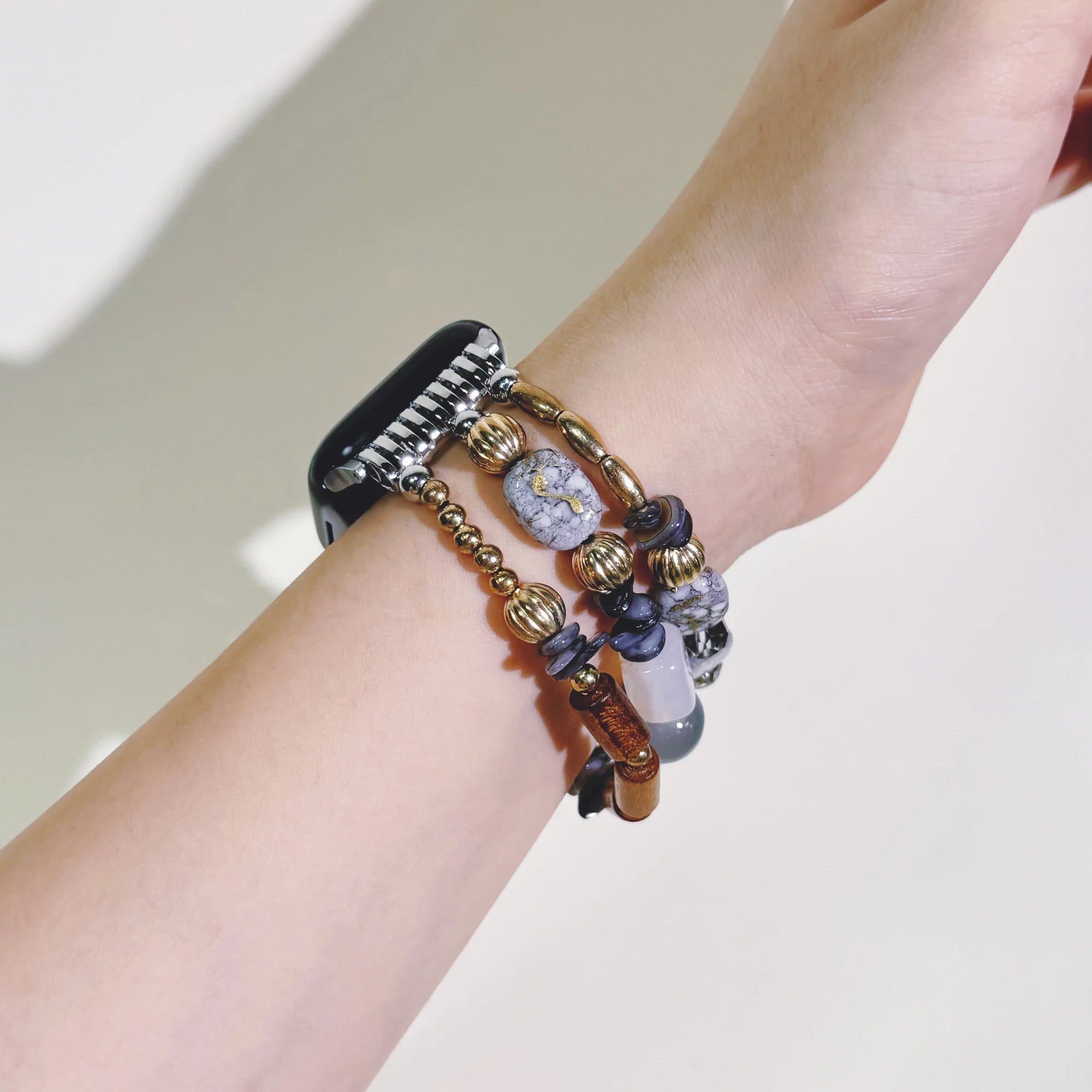 Colorful Queen Agate Beaded Ethnic-Style Apple Watch Bracelet Band - Ash
